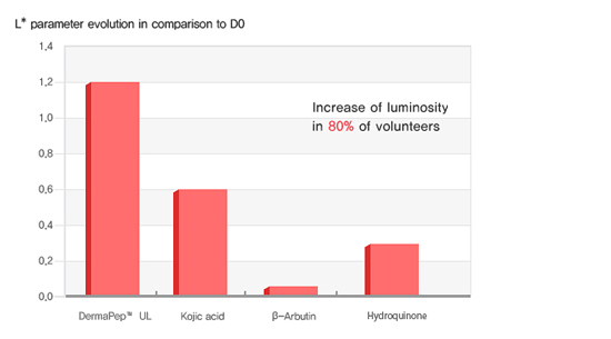 in vivo study results show that DermaPep™ UL is far more effective than other known whitening ingredients such as kojic acid, arbutin and hydroquinone.
